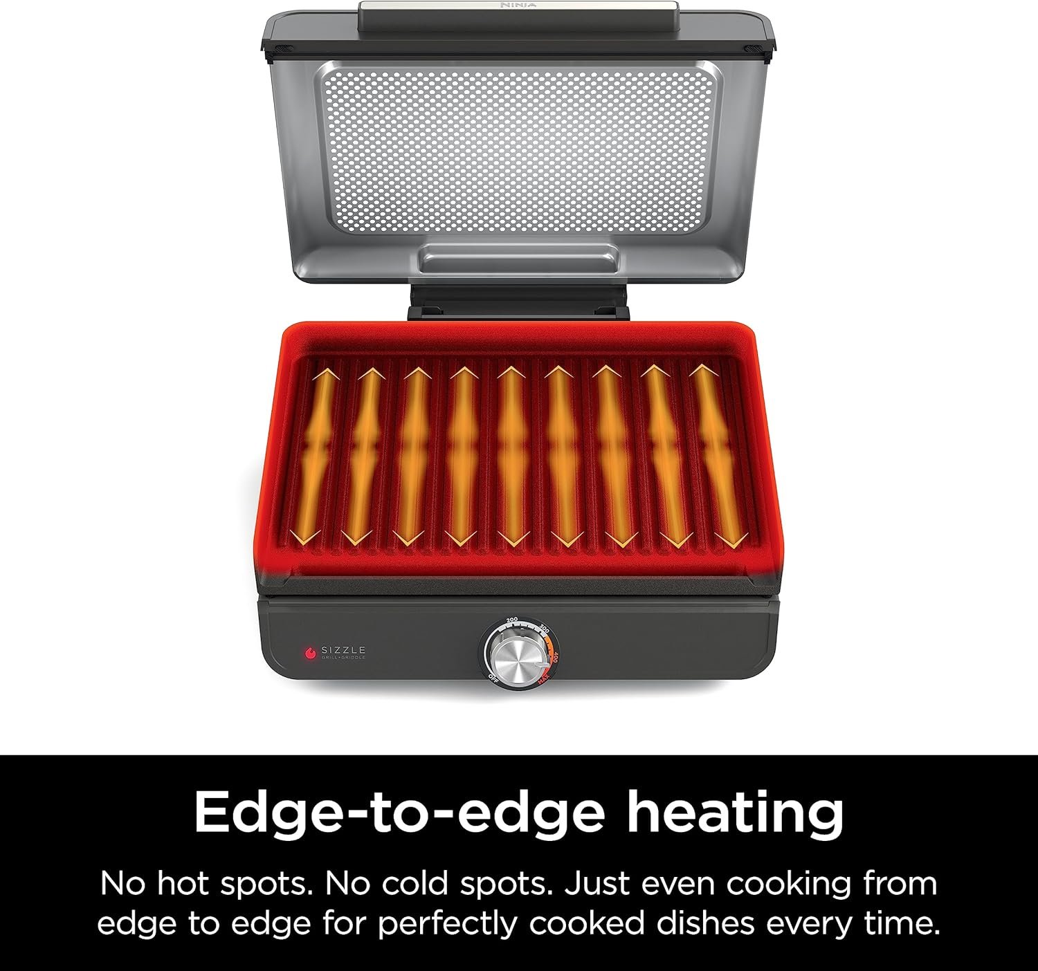 Bring outdoor grilling indoors with the Ninja GR101 Sizzle. This all-in-one countertop cooking system lets you grill, sear, and griddle your favorite meals in a smoke-reduced way. The interchangeable grill and flat griddle plates handle everything from juicy burgers to fluffy pancakes, while edge-to-edge heating ensures consistent results—no hot or cold spots. Reach temperatures up to 500 °F for perfect sear marks, and use the perforated mesh lid to help control smoke and splatter. The nonstick plates are dishwasher-safe for easier cleanup, and its family-sized 14″ cooking surface fits multiple servings for your household. Compact yet powerful (1450W), this grill is ideal for year-round indoor cooking, whether you’re craving steaks, vegetables, or breakfast favorites.